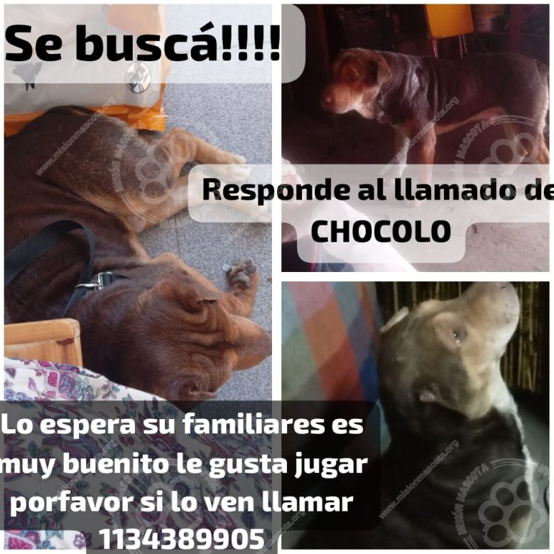 Soy Chocolo (macho) me perdí el viernes 20 diciembre 2024 (hace 11 meses) cerca de Merlo norte Sullivan y antesana, Buenos Aires.