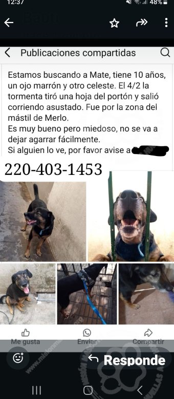 Soy Mate (macho) me perdí el martes 04 febrero 2025 (hace 10 meses) cerca de Mastil,merlo centro (B1722), Buenos Aires.
