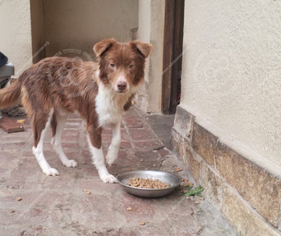 Es un macho aparentemente de un año aprox. Mezcla con border collie chocolate. Tenia la patita lastimada