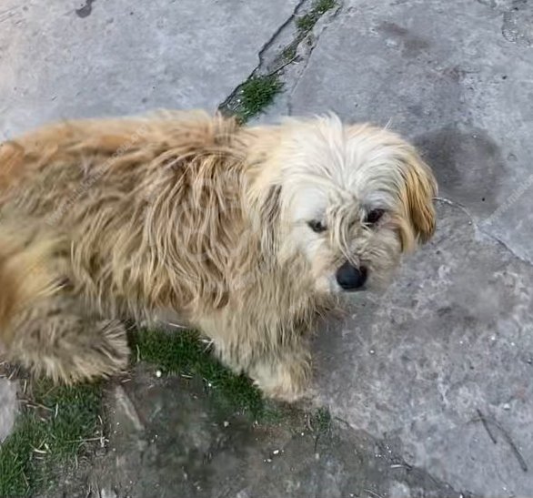 Nariz negra, pelo largo, petiso, tiene en la panza una herida abierta justo sobre el pene por donde hace pis ya que tuvo una uretrostomia