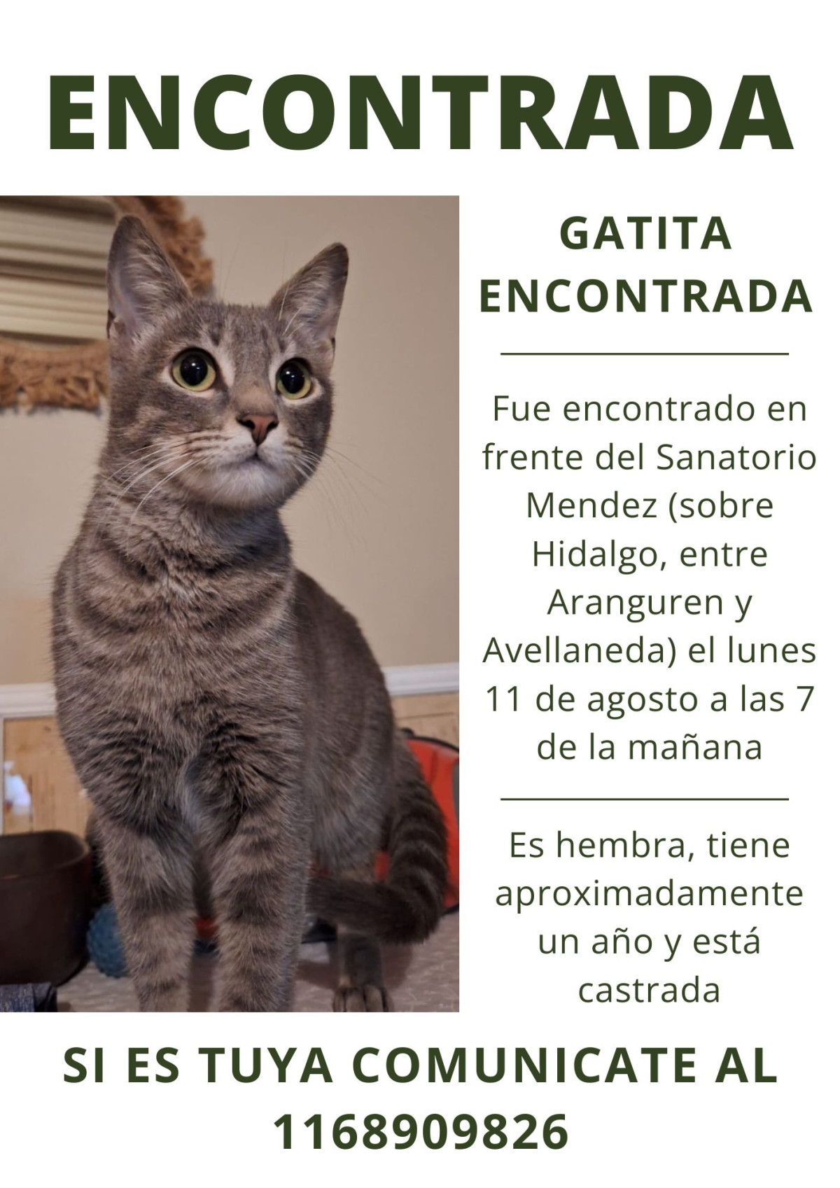 es (Mestizo) (hembra) se encontró el sábado 09 agosto 2025 (hace 3 meses) cerca de Parque Centenario (C1405) ciudad de CABA, Ciudad Autónoma de Buenos Aires.