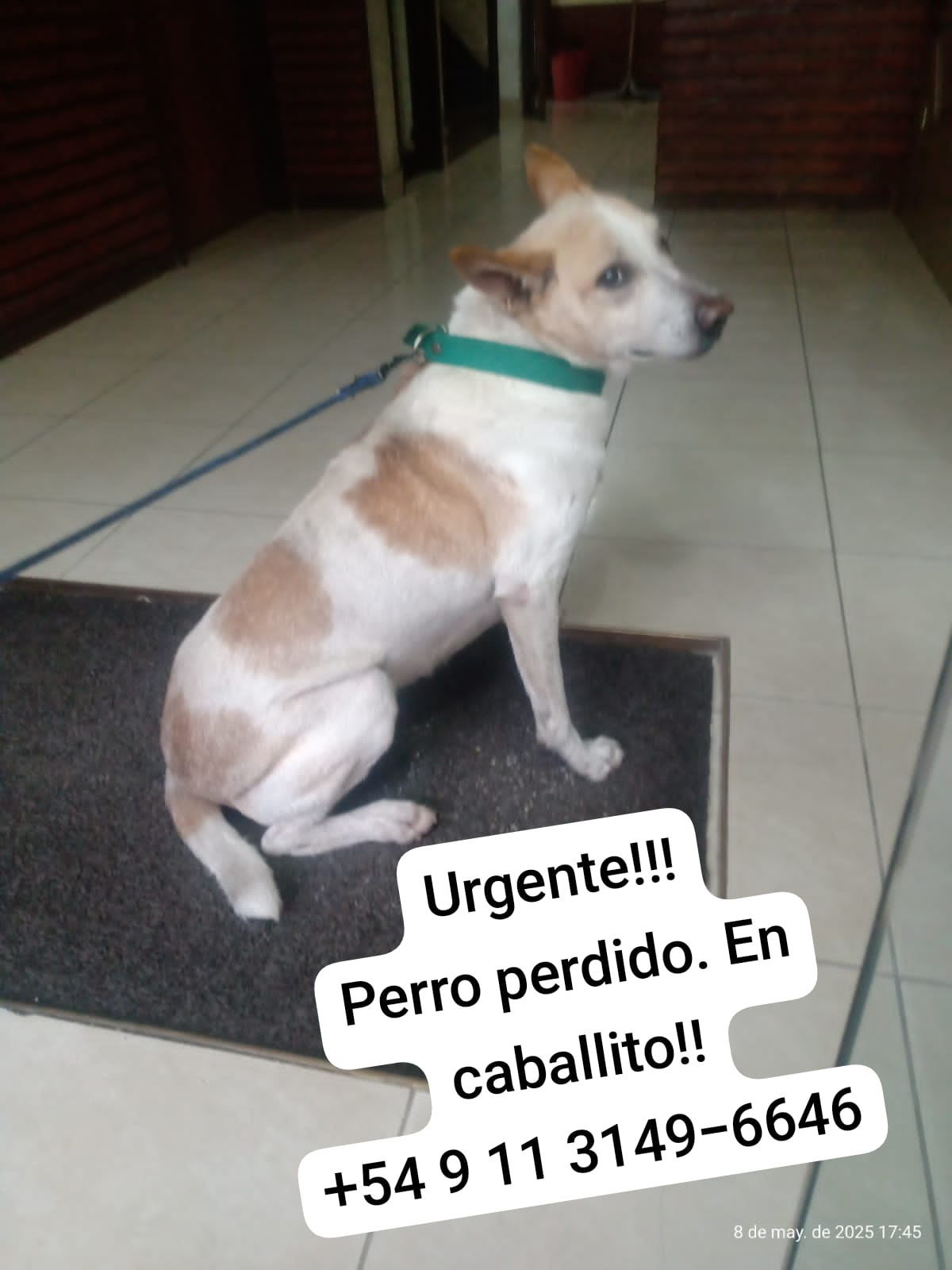 Bartolito es (Mestizo) (macho) se perdió el miércoles 16 abril 2025 (hace 7 meses) cerca de Tortuguitas (1667) ciudad de Malvinas argentinas, Buenos Aires.
